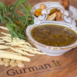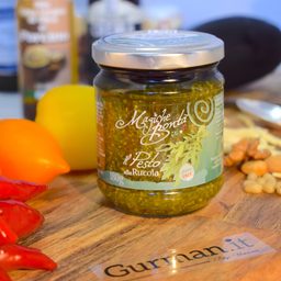 Зеленый соус песто в основе все теже ингридинты как и в классическом варианте приготовления, но вместо базилика главным ингридиентом в нем выступает руккола. У этой зелени чуть горьковатый, перечный привкус, и он особенно ярко выражен в этом соусе. Если такое сочетание ингридиентов Вам по вкусу, то такой соус станет отличным дополнением к приготовленным блюдам. Таким как - паста, ризотто, пицца, отварной картофель, равиолли, супы, рулеты, холодные и теплые закуски и так далее. Содержит в себе большое количество витаминов и минералов, необходимых для организма человека.